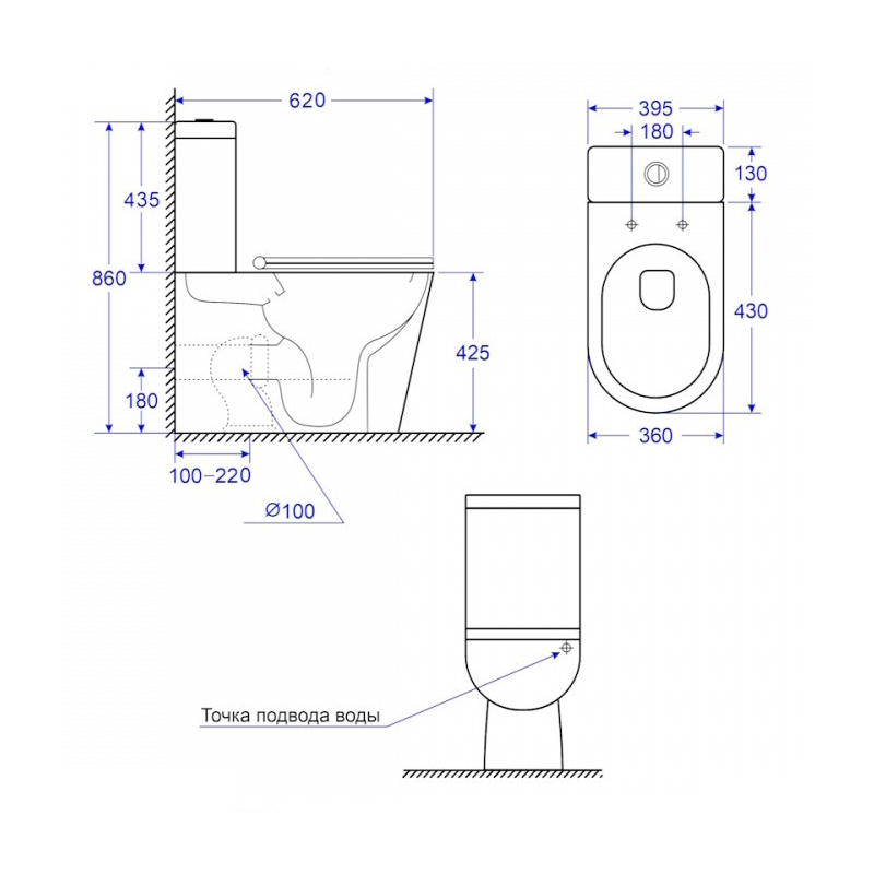 чаша унитаза, бачок со смывной арматурой, сиденье с микролифтом, комплект креплений
