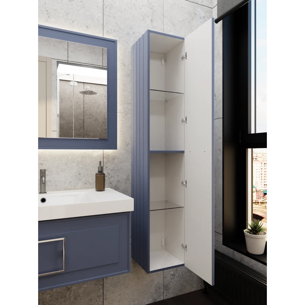 Подвесной пенал La Fenice Cubo FNC-05-CUB-BG-30 синего цвета оснащается на выбор ручкой белого, черного или цвета хром. Это позволяет пеналу гармонично вписаться во множество интерьерных решений ванной комнаты. Пенал можно перевернуть на 180°, тем самым выбрав необходимую сторону открывания дверцы. Данный пенал станет прекрасным и функциональным дополнением к тумбам La Fenice Cubo с одним ящиком (FNC-01-CUB-BG-80, FNC-01-CUB-BG-90, FNC-01-CUB-BG-100), либо с двумя ящиками (FNC-01-CUB-BG-80-2, FNC-01-CUB-BG-90-2, FNC-01-CUB-BG-100-2). Пенал оснащен петлями с доводчиком и подвесным регулируемым механизмом LIBRA (Италия).