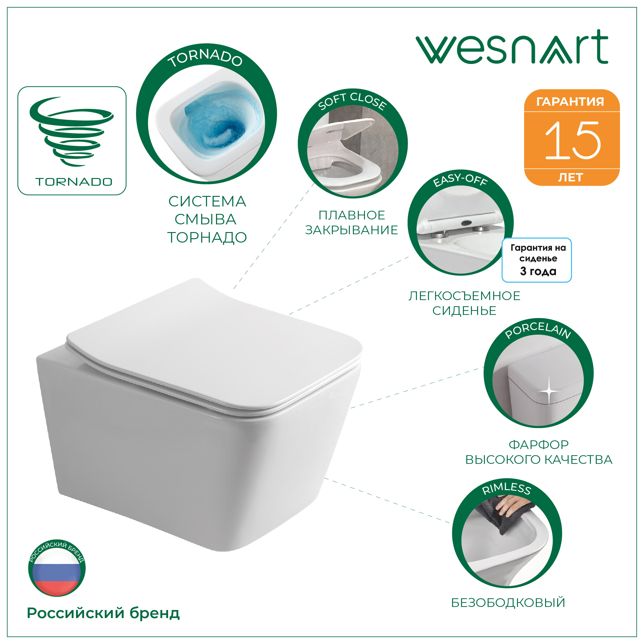 чаша унитаза, сиденье с микролифтом, комплект креплений