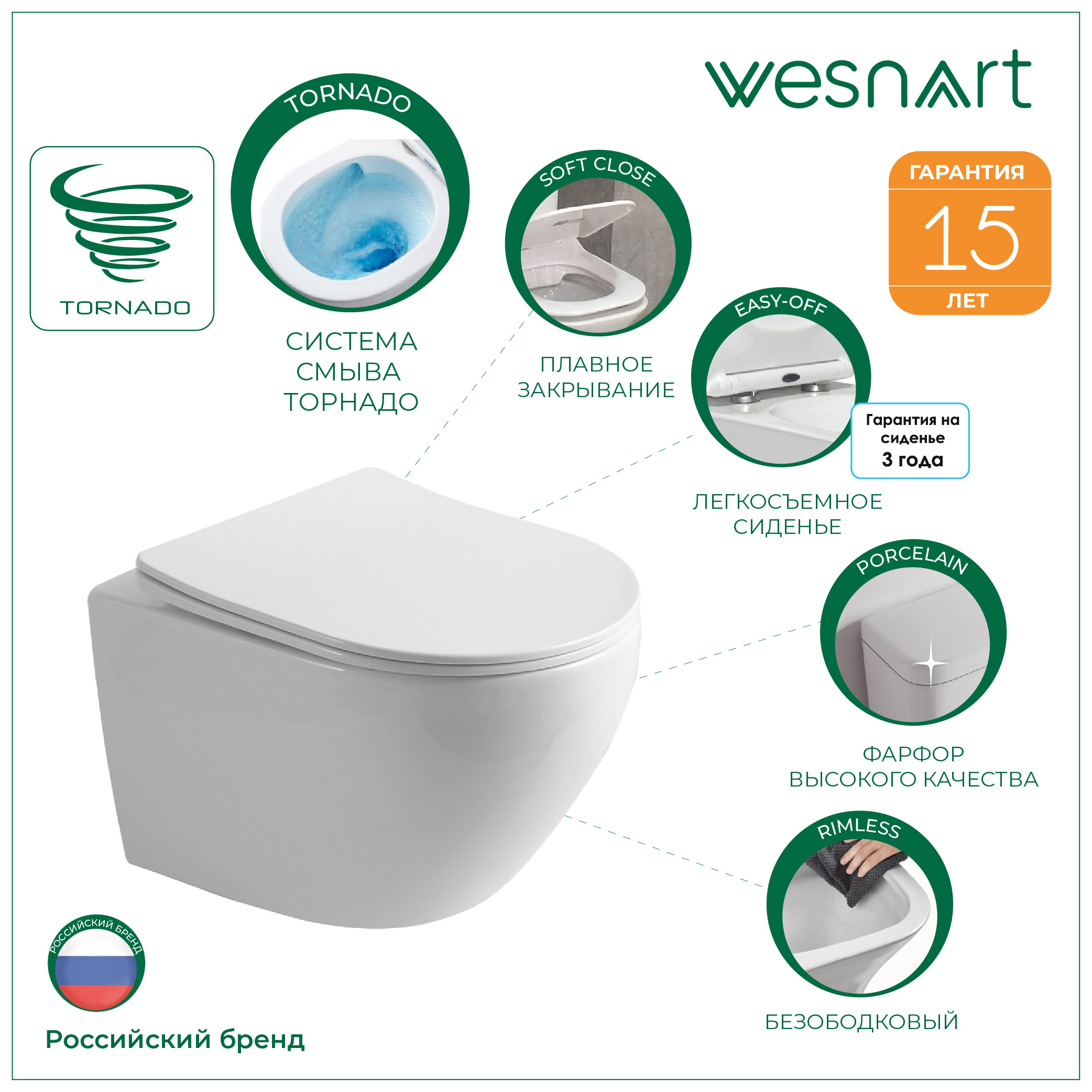 чаша унитаза, сиденье с микролифтом, комплект креплений