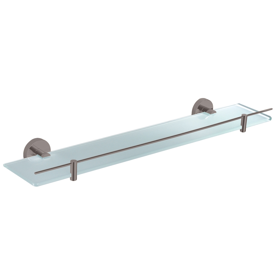 Полочка стеклянная, 600 мм. с ограничителем, ЦВЕТ СЕРЫЙ МЕТАЛЛИК КРАЦОВАННЫЙ, арт. COA0900/60MGK. Стильный предмет интерьера, предназначенный для ванной комнаты. Устанавливается на стену. Материал, применяемый для производства аксессуара - латунь/стекло. Толщина стекла 8 мм. Толщина стекла 8 мм. Практичная и в то же время продуманная вещь, выполненная в стиле модерн. Кроме аксессуаров в коллекции COLORADO присутствуют смесители для раковины, ванны, душа, кухни. Это позволит оформить ванную комнату в едином стиле!