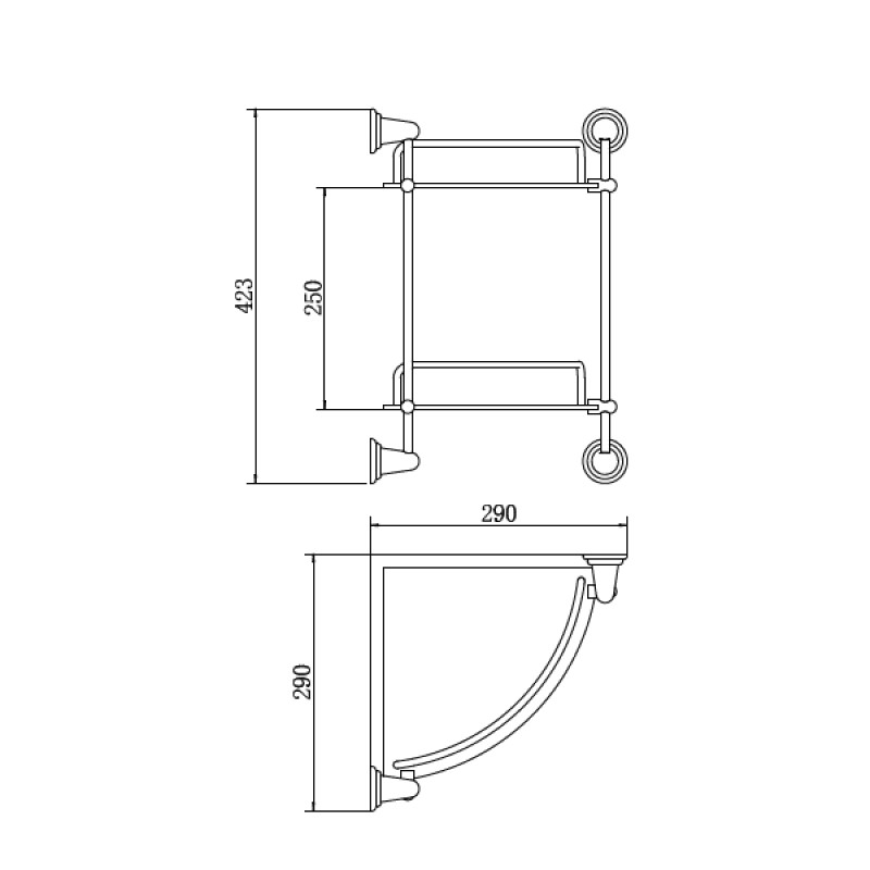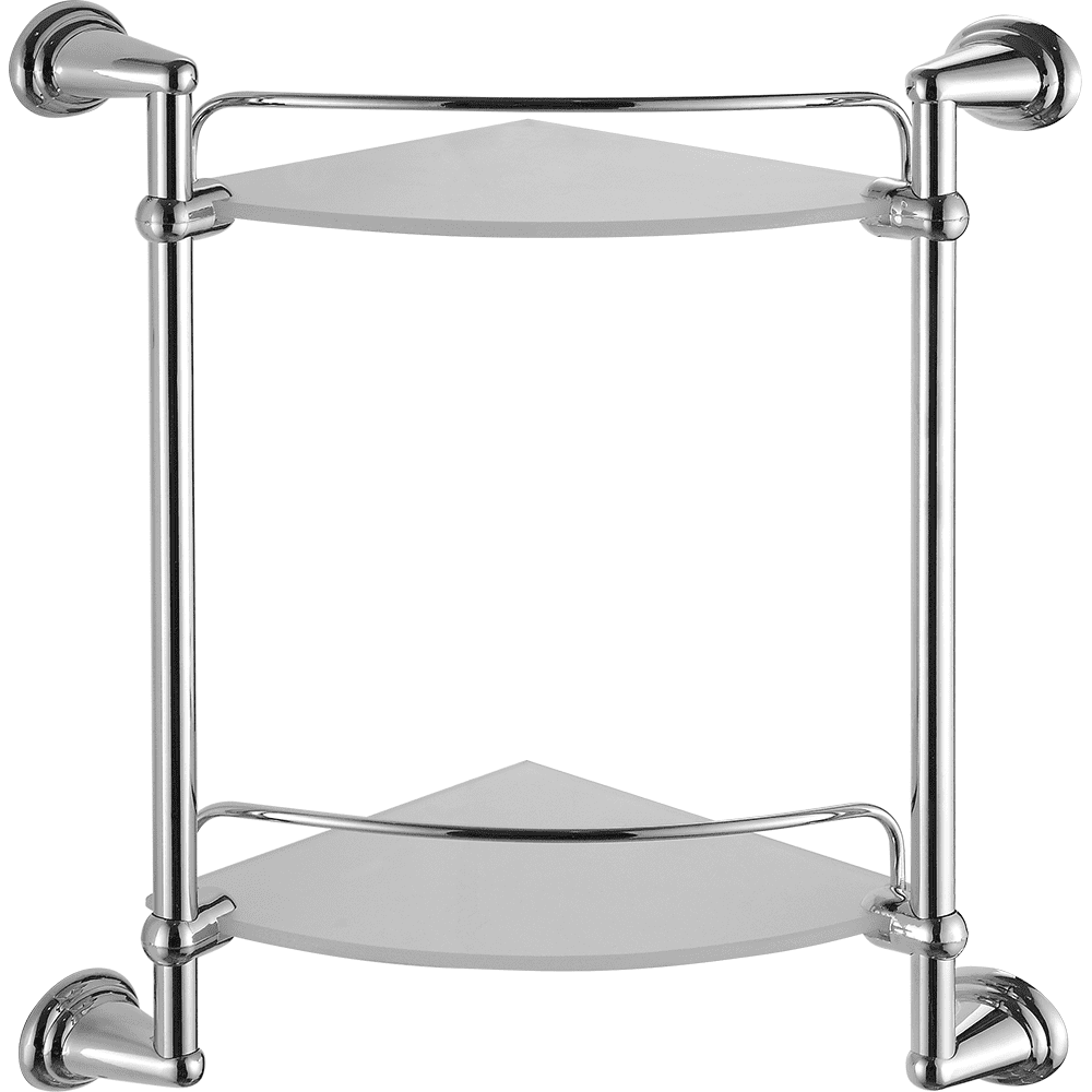 полка настенная угловая двухъярусная со стеклянными матовыми поверхностями, H =423 мм (Н между полок=250 мм), L=290 мм
