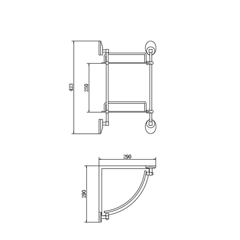полка настенная угловая двухъярусная со стеклянными матовыми поверхностями, H=423 мм (Н между полок=250 мм), L=290 мм