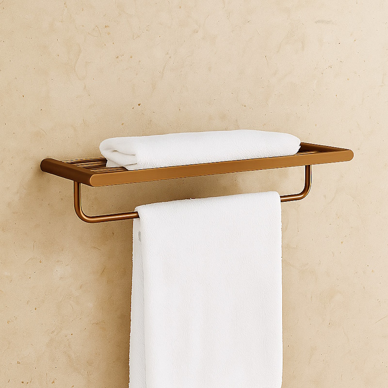 Полка для полотенец в благородной бронзе добавит тепла и утончённости в интерьер ванной. Прочный металл, стойкий к влаге, сохранит первозданный вид на долгие годы.