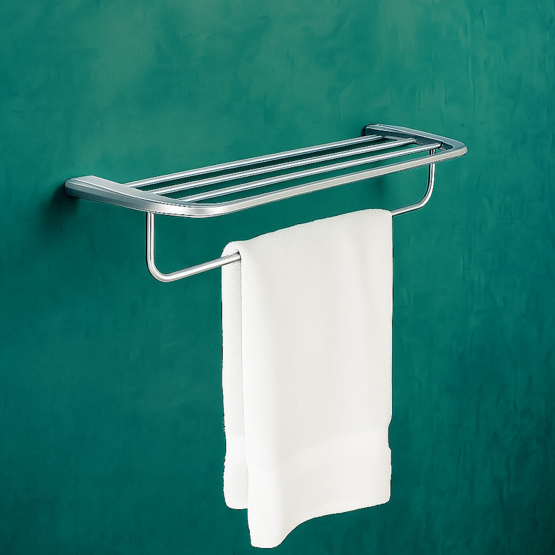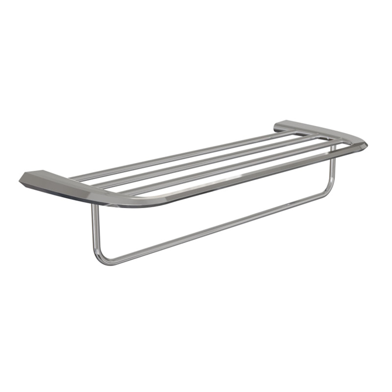Элегантная полка для полотенец в хромированном исполнении добавит ванной сияния. Сплав ZAMAK и нержавеющая сталь SUS-201 обеспечивают прочность и стойкость к коррозии, а глянцевая поверхность с антиследовым покрытием надолго сохраняет безупречный вид