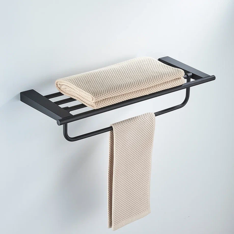 Полка для полотенец Shevanik SG5708H в черном матовом цвете — это идеальное сочетание функциональности и эстетики для вашей ванной комнаты или кухни. Изготовленная из прочной нержавеющей стали, она гарантирует долговечность и устойчивость к влаге, что делает её отличным выбором для помещений с повышенной влажностью. Современный минималистичный дизайн придаёт полке стильный вид, позволяя ей гармонично вписаться в любой интерьер. Настенный монтаж обеспечивает простоту установки, а комплект, включающий как саморезы, так и дюбели, позволяет выбрать оптимальный способ крепления в зависимости от типа стены. Полка Shevanik не только удобна в использовании, но и служит элегантным дополнением к общему дизайну помещения, подчёркивая ваш безупречный вкус.