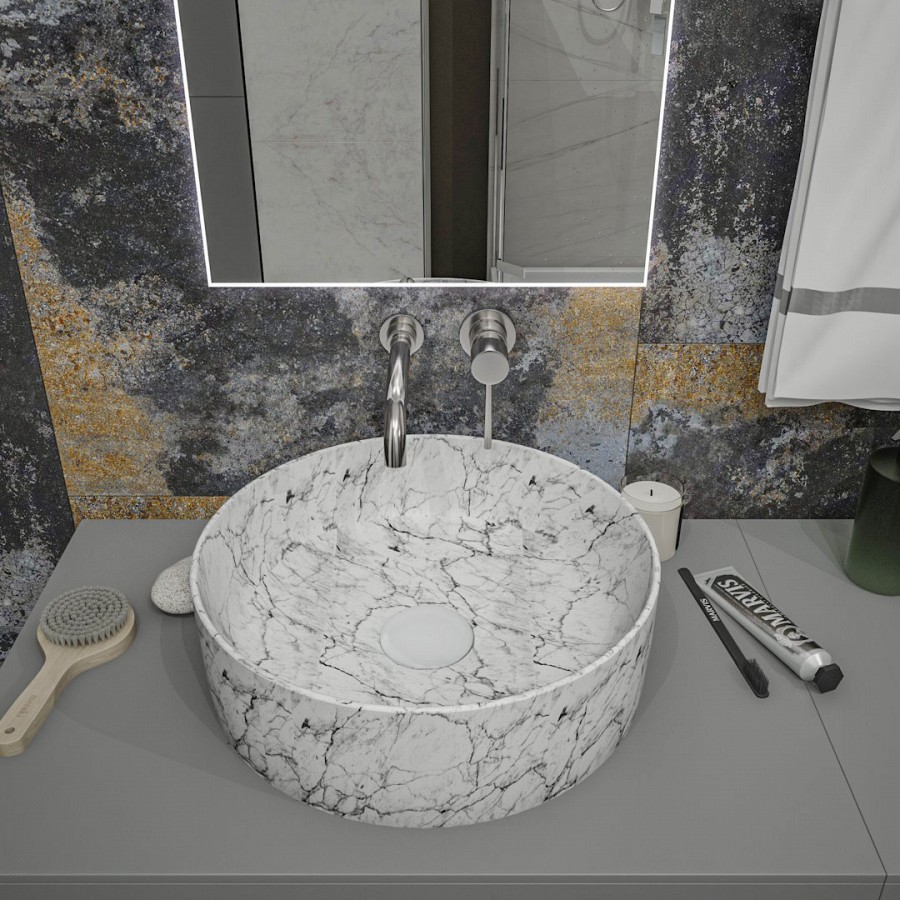 Раковина чаша Maretti EA13NS10-740MR, белый мрамор. Материал: санфарфор. Размер: 41x41x14. Форма: круглая.