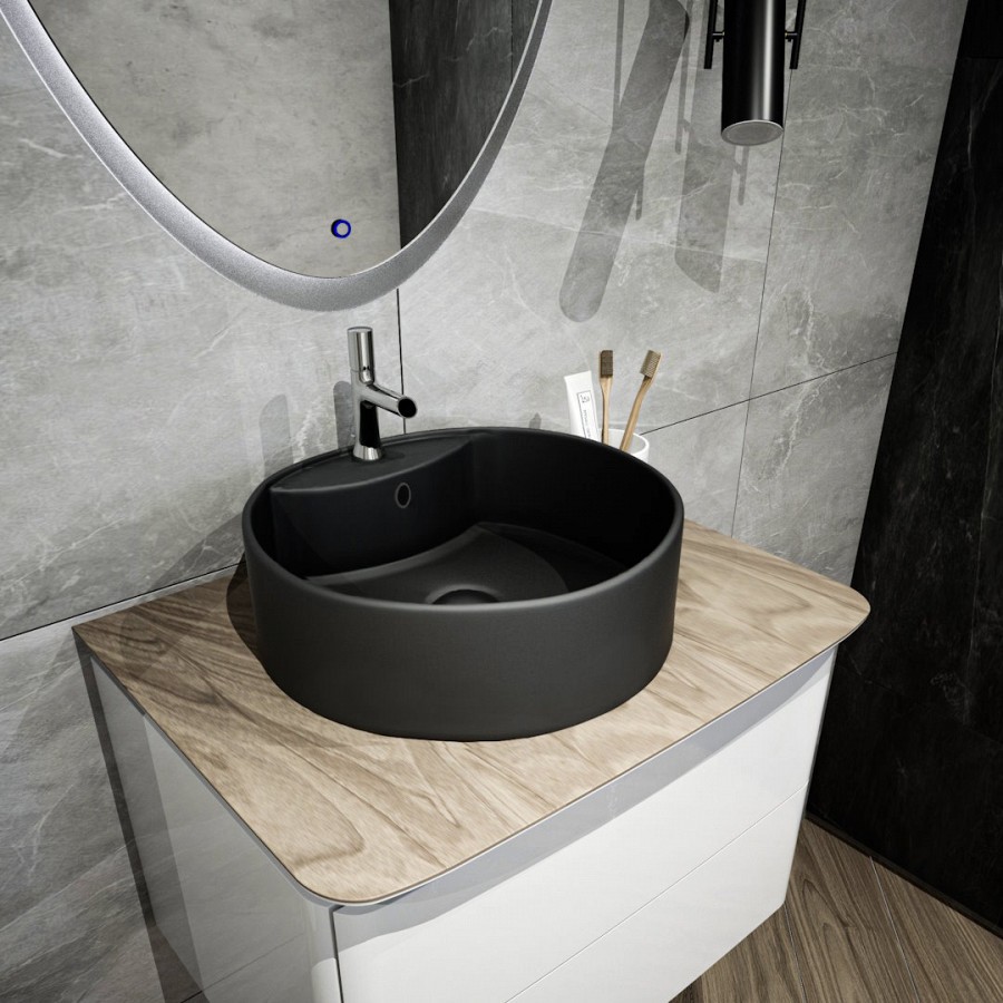 Раковина чаша Maretti EA13NS44-560, черная. Материал: санфарфор. Размер: 40x40x14. Форма: круглая.