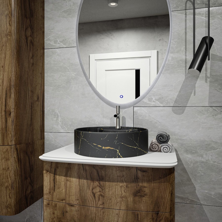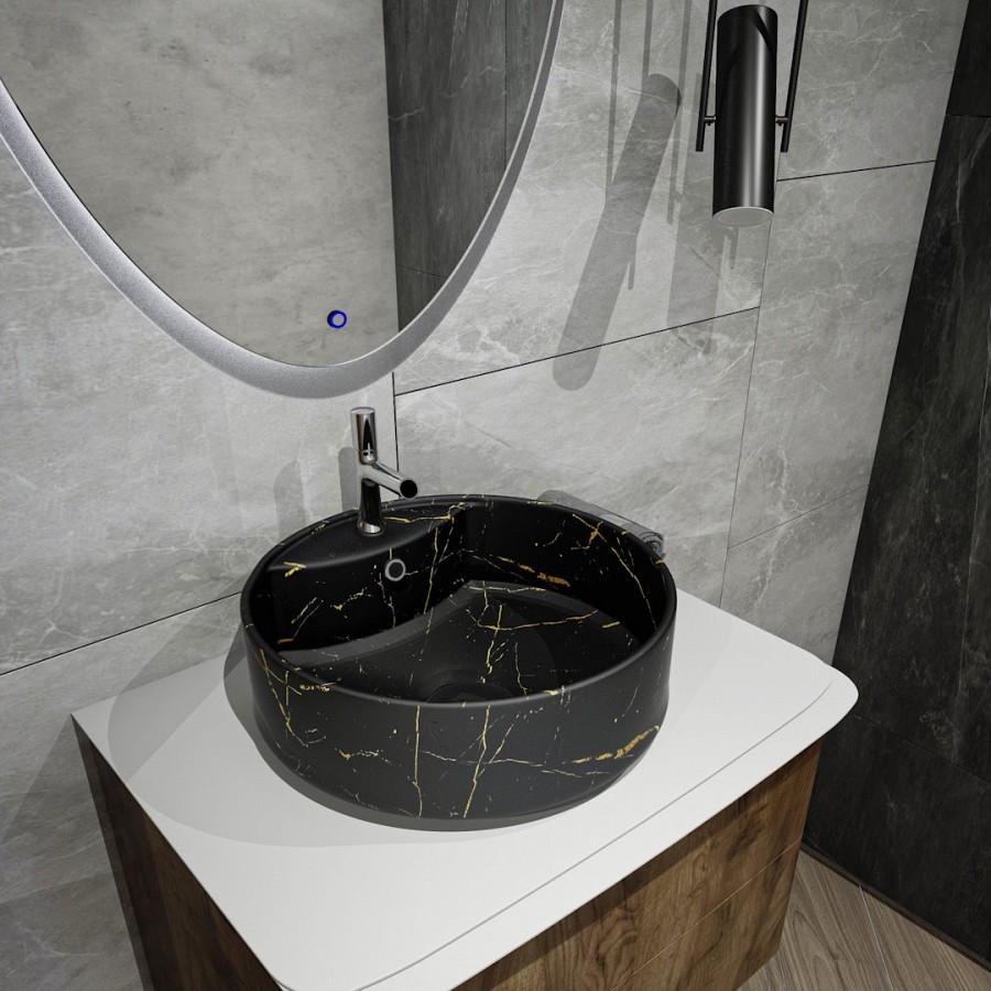 Раковина чаша Maretti EA13NS44-560MR, черный мрамор. Материал: санфарфор. Размер: 40x40x14. Форма: круглая.