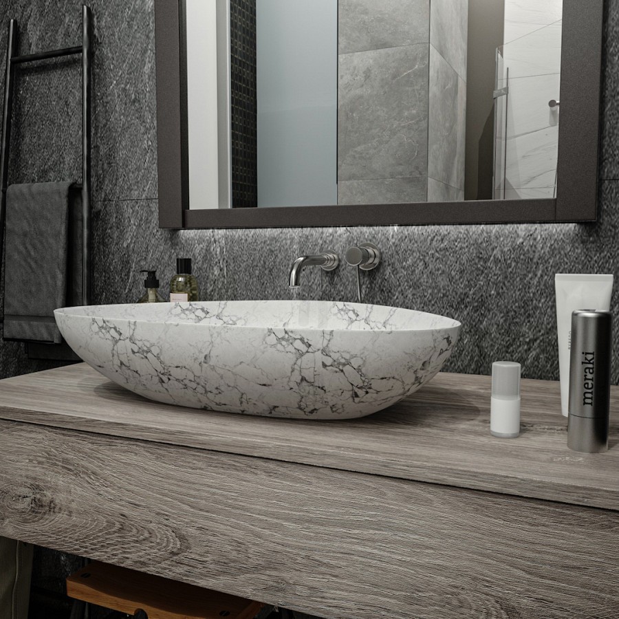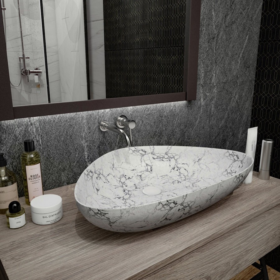 Раковина чаша Maretti EL13NS56-740MR, белый мрамор. Материал: санфарфор. Размер: 59x39x13. Форма: овальная.