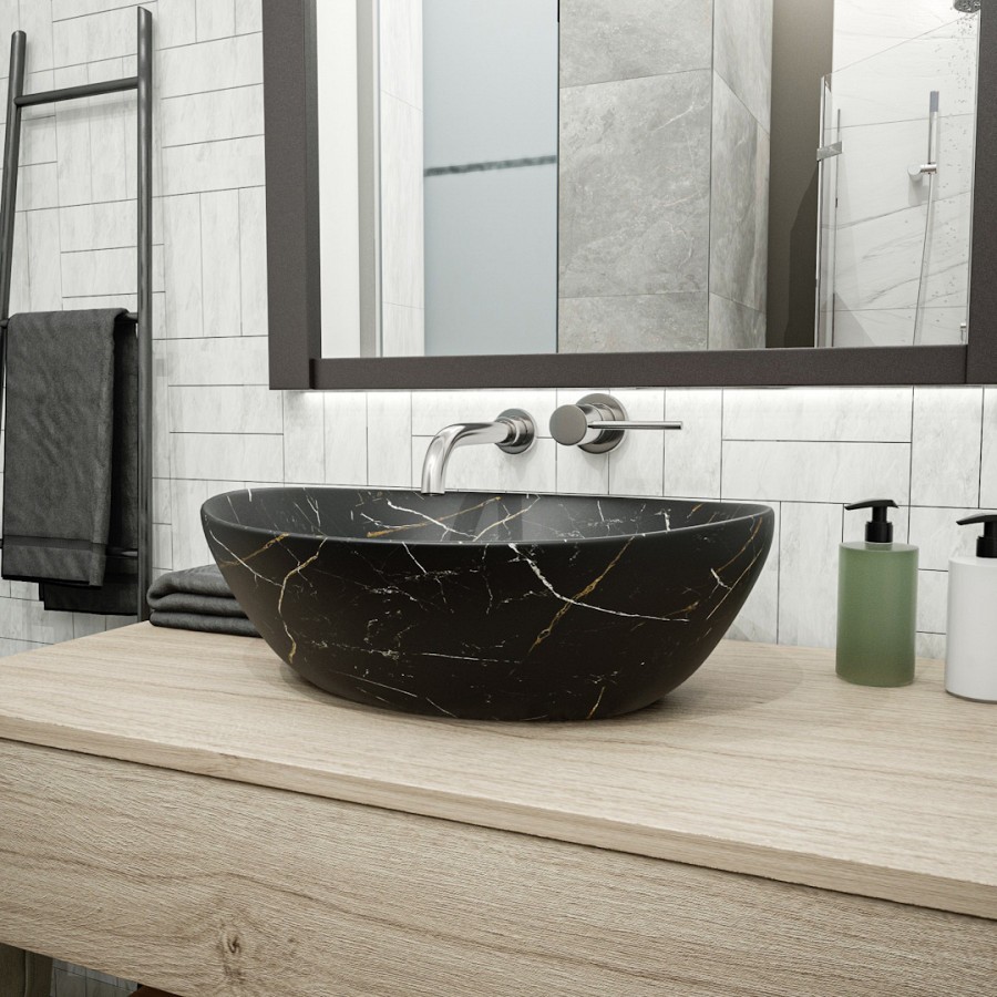 Раковина чаша Maretti EN13NS87-560MR, черный мрамор. Материал: санфарфор. Размер: 41x33,5x14,5. Форма: овальная.