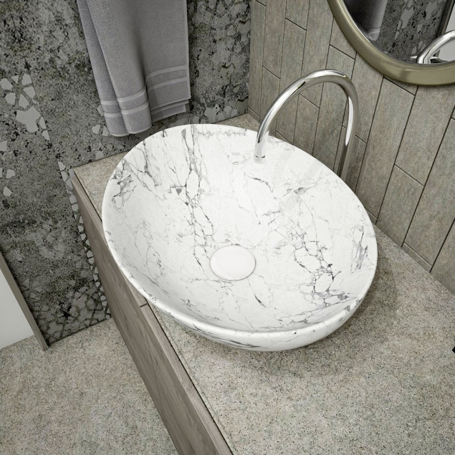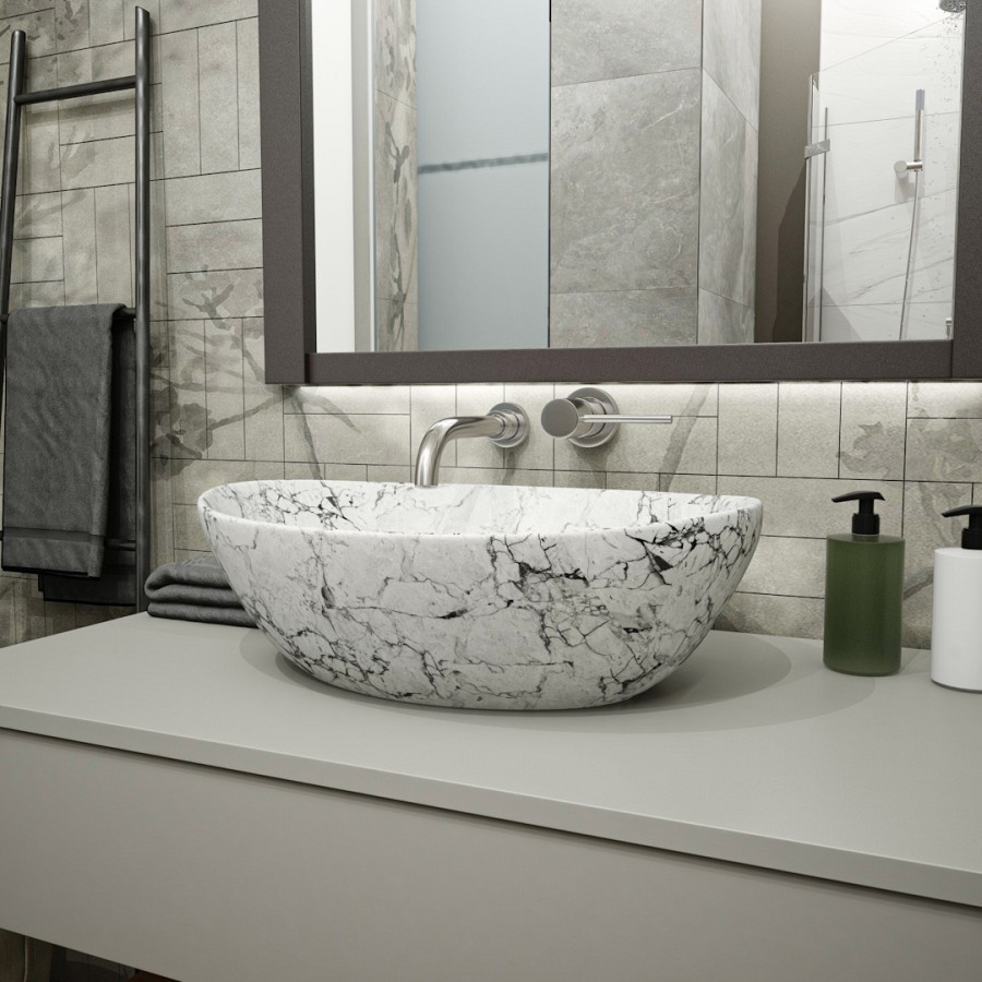 Раковина чаша Maretti EN13NS87-740MR, белый мрамор. Материал: санфарфор. Размер: 41x33,5x14,5. Форма: овальная.
