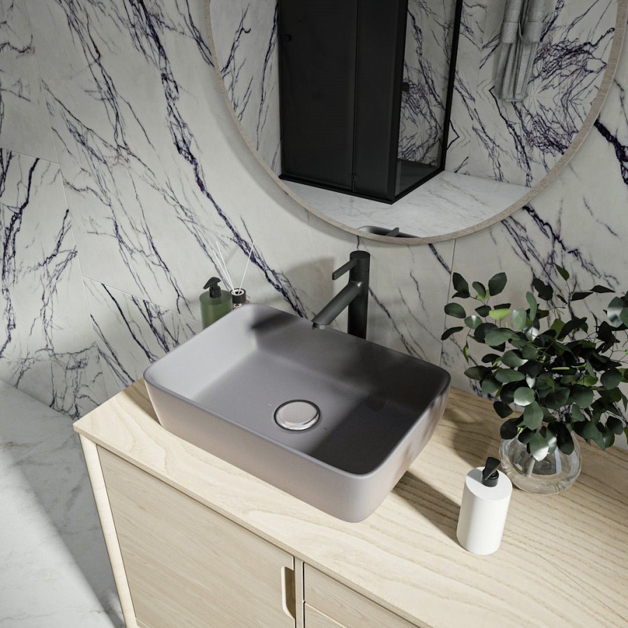 Раковина чаша Maretti UM13NS03-985, серая. Материал: санфарфор. Размер: 37x47,5x14. Форма: прямоугольная.