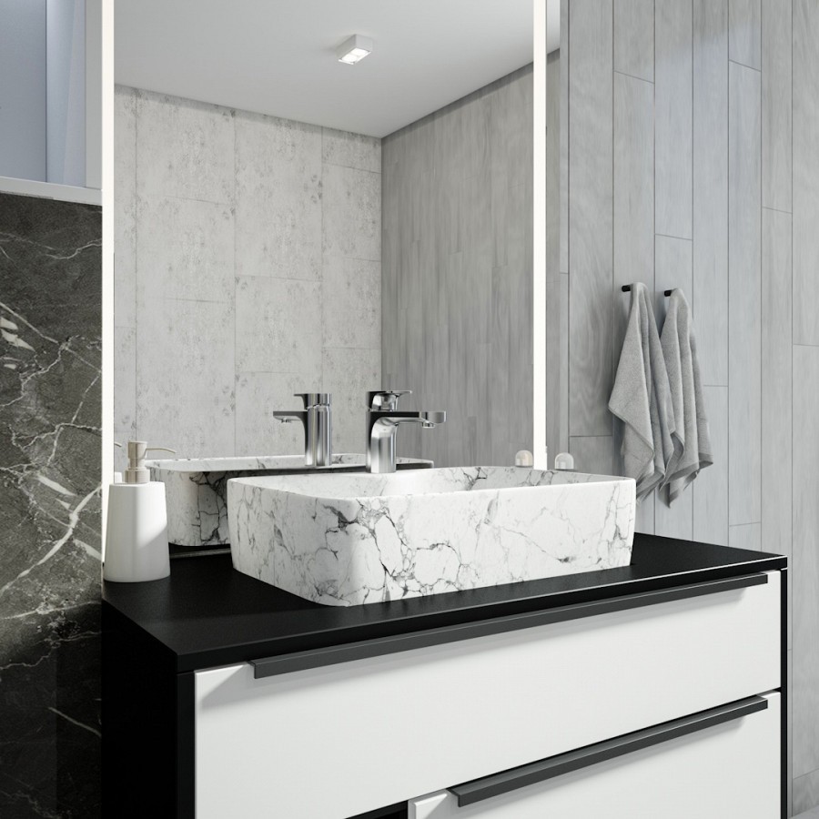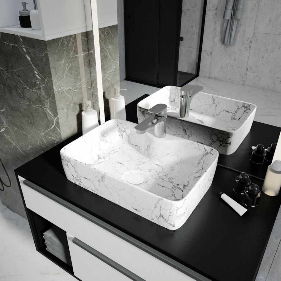 Раковина чаша Maretti UM13NS96-740MR, белый мрамор. Материал: санфарфор. Размер: 48х37х13. Форма: прямоугольная.
