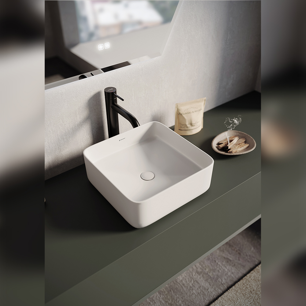 Накладная раковина Ватикан выполнена в квадратном форм-факторе.