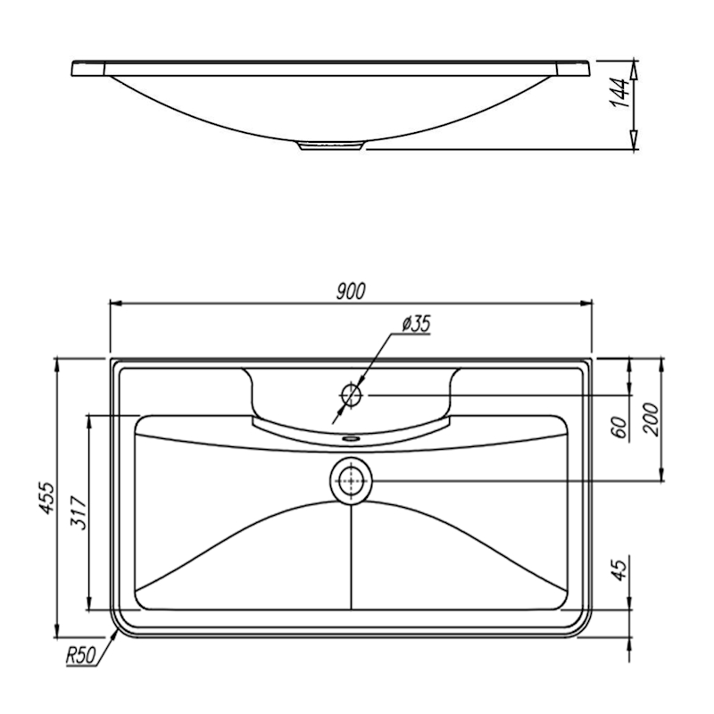 Раковина АЛЛЕГРО 900. Размер: 900х455х144 мм.