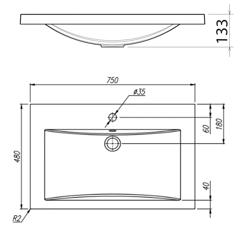 Раковина АНИТА 750. Размер: 750х480х133 мм.