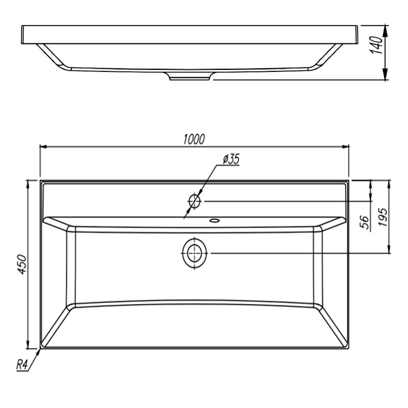 Раковина АСТОРИЯ 1000. Размер: 1000х450х140 мм.
