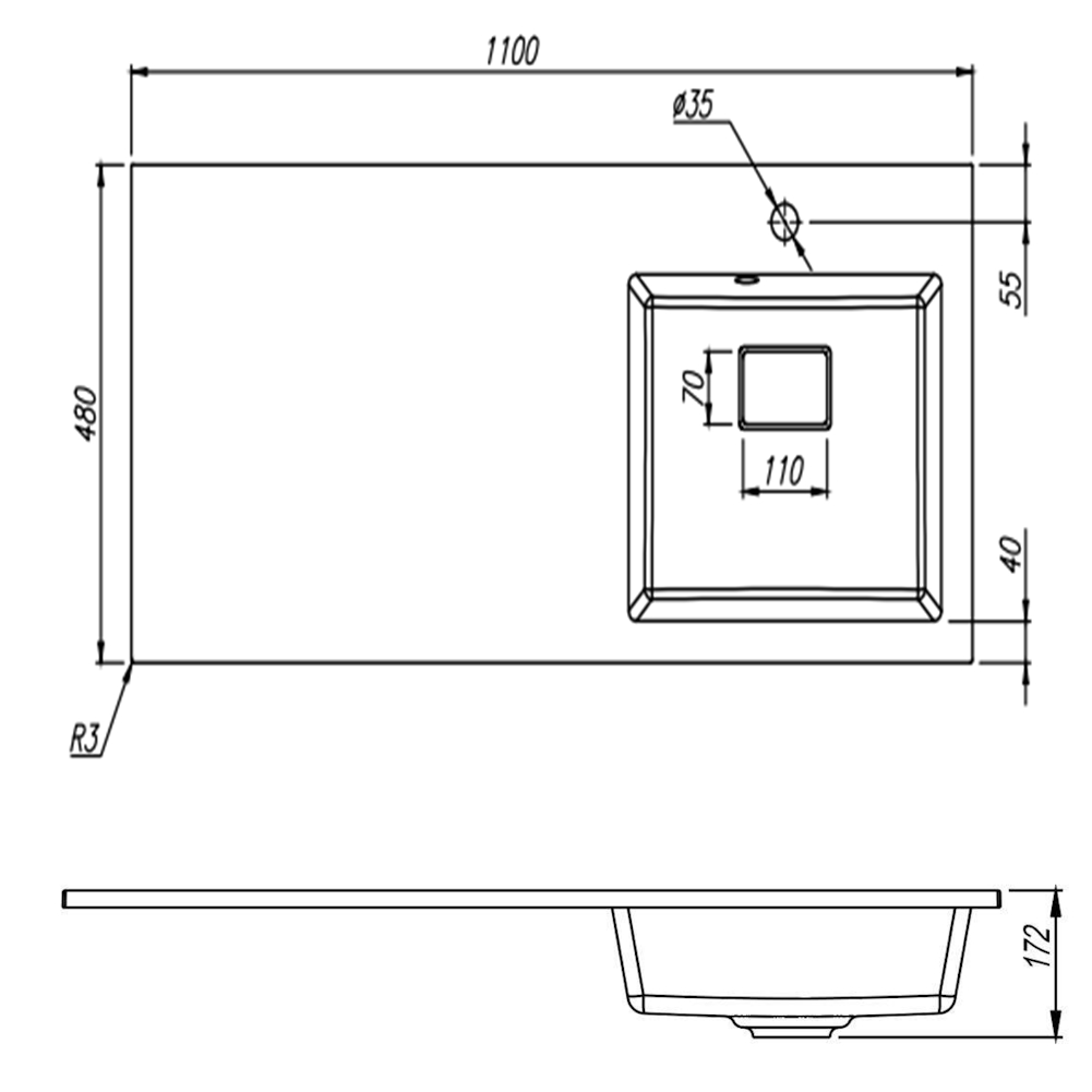 Размер: 1100х480х172 мм.
