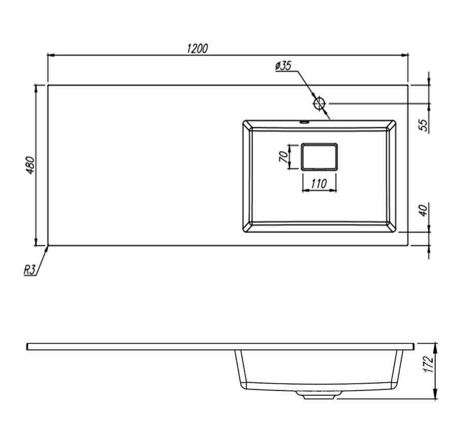 Размер: 1200х480х172 мм.