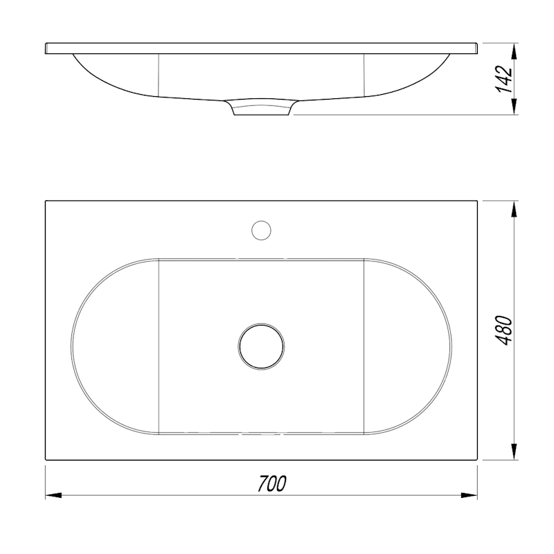 Раковина ГАВАНА 700. Размер: 700х480х142 мм.