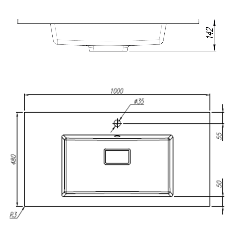 Раковина ПЕРСОНА 1000. Размер: 1000х480х142 мм.