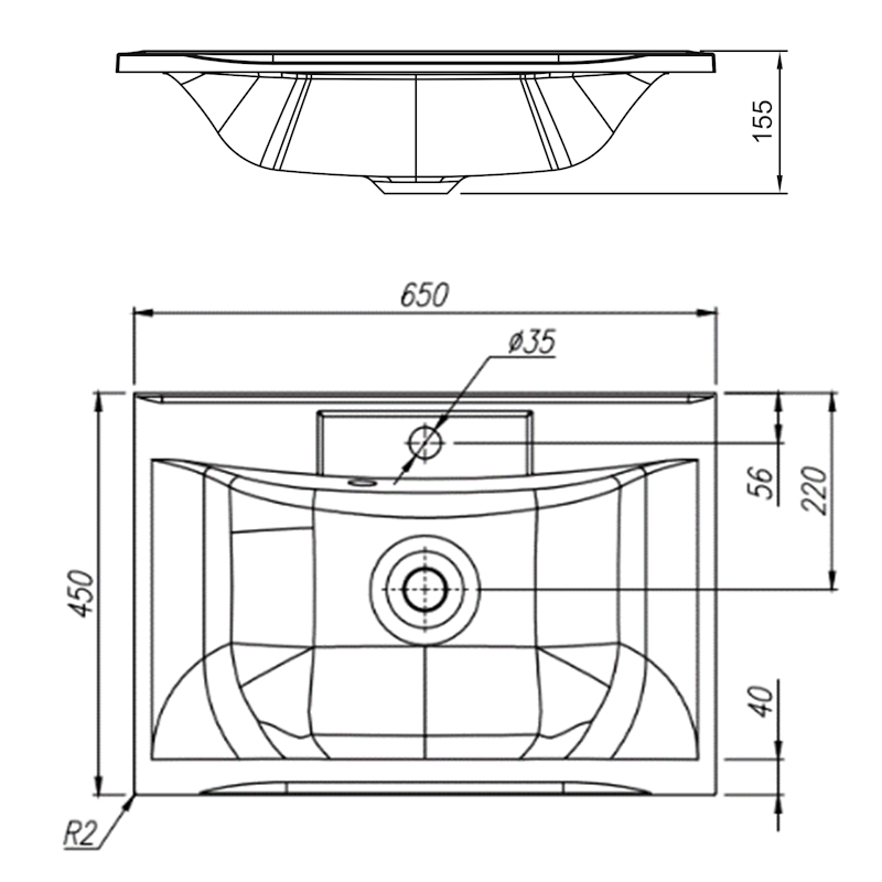 Раковина ПРИМА 650. Размер: 650х450х155 мм.