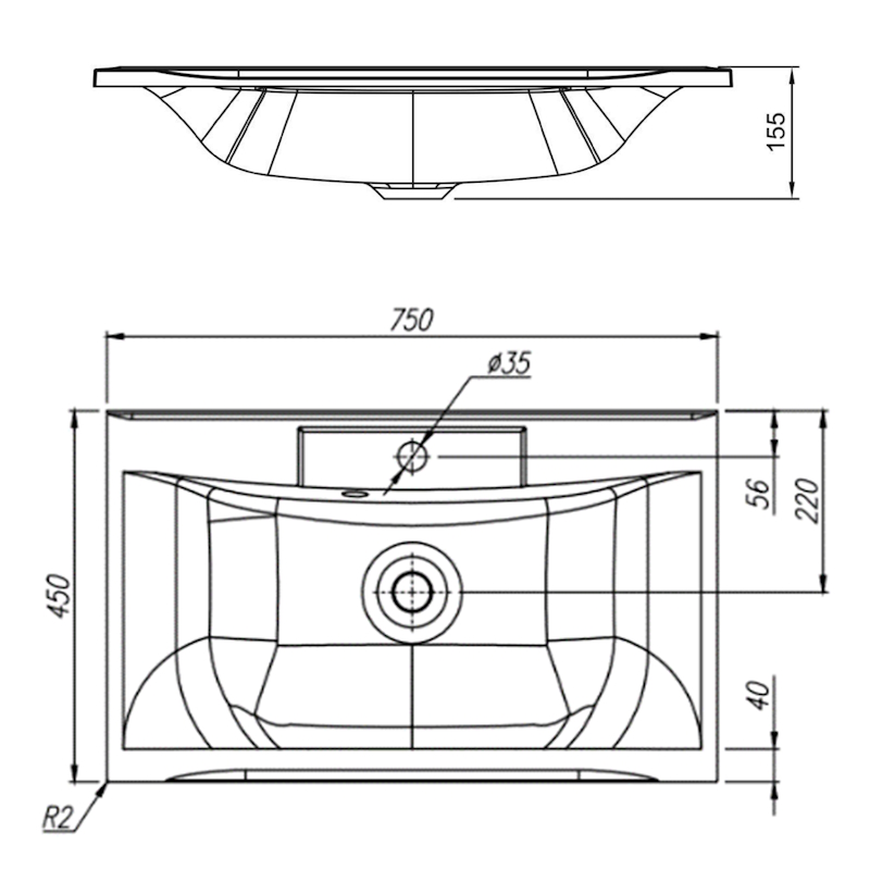 Раковина ПРИМА 750. Размер: 750х450х155 мм.
