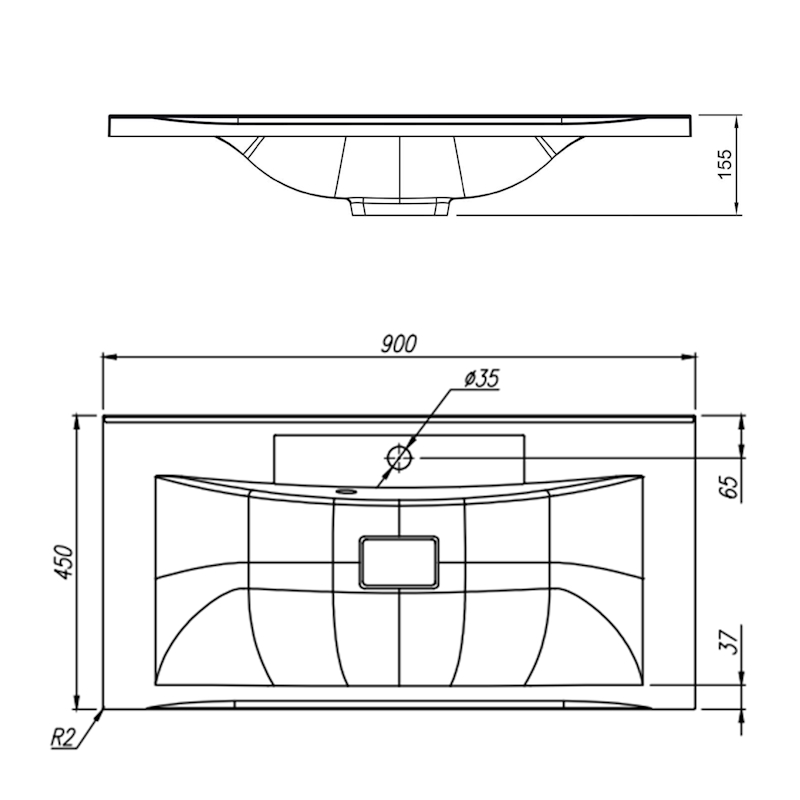 Раковина ПРИМА 900. Размер: 900х450х155 мм.