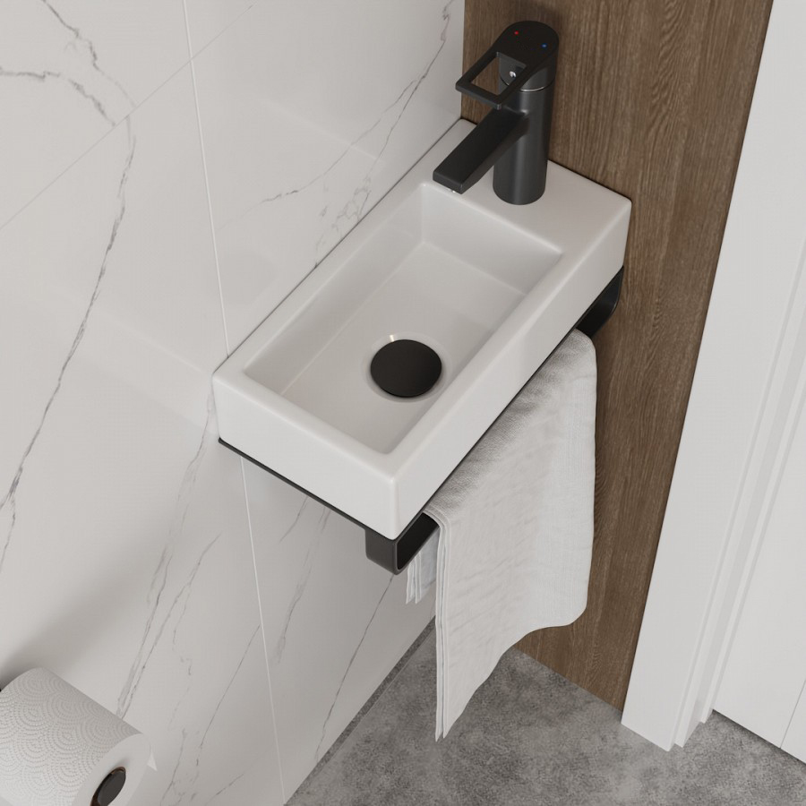 Удобная конструкция, которая позволяет быстро осуществить монтаж, умывальника. Встроенная полочка под смеситель добавляет функциональности, а отверстие для крана уже предусмотрено конструкцией.