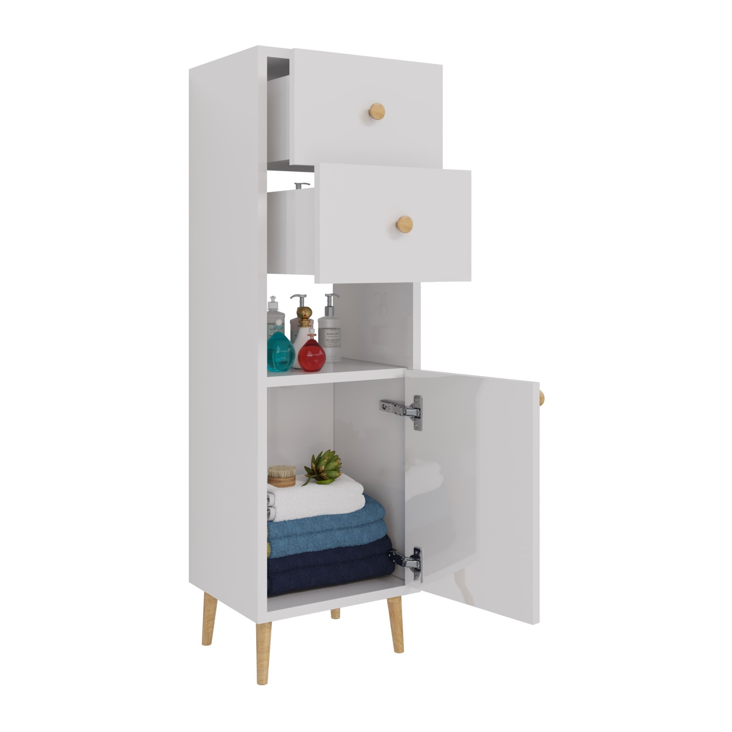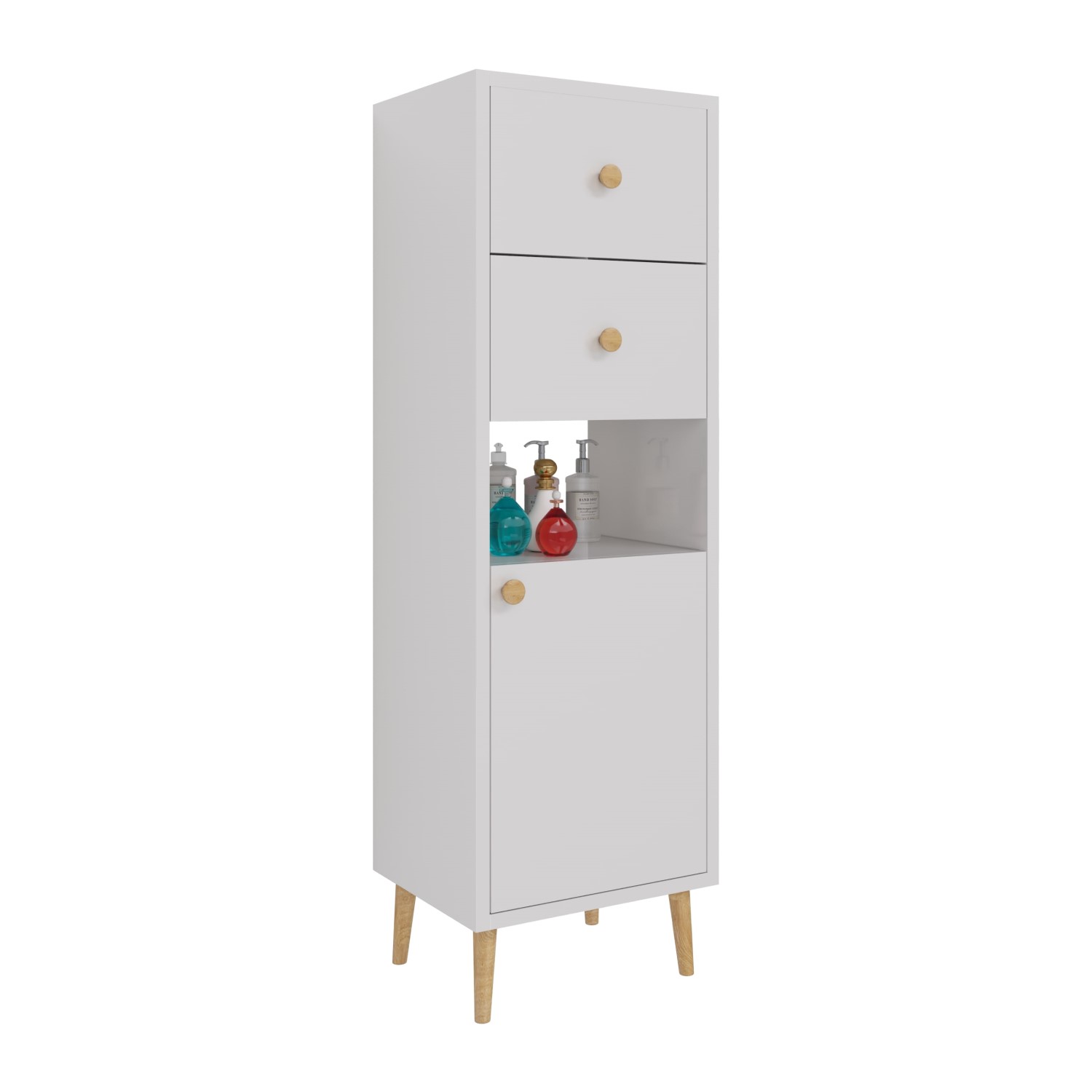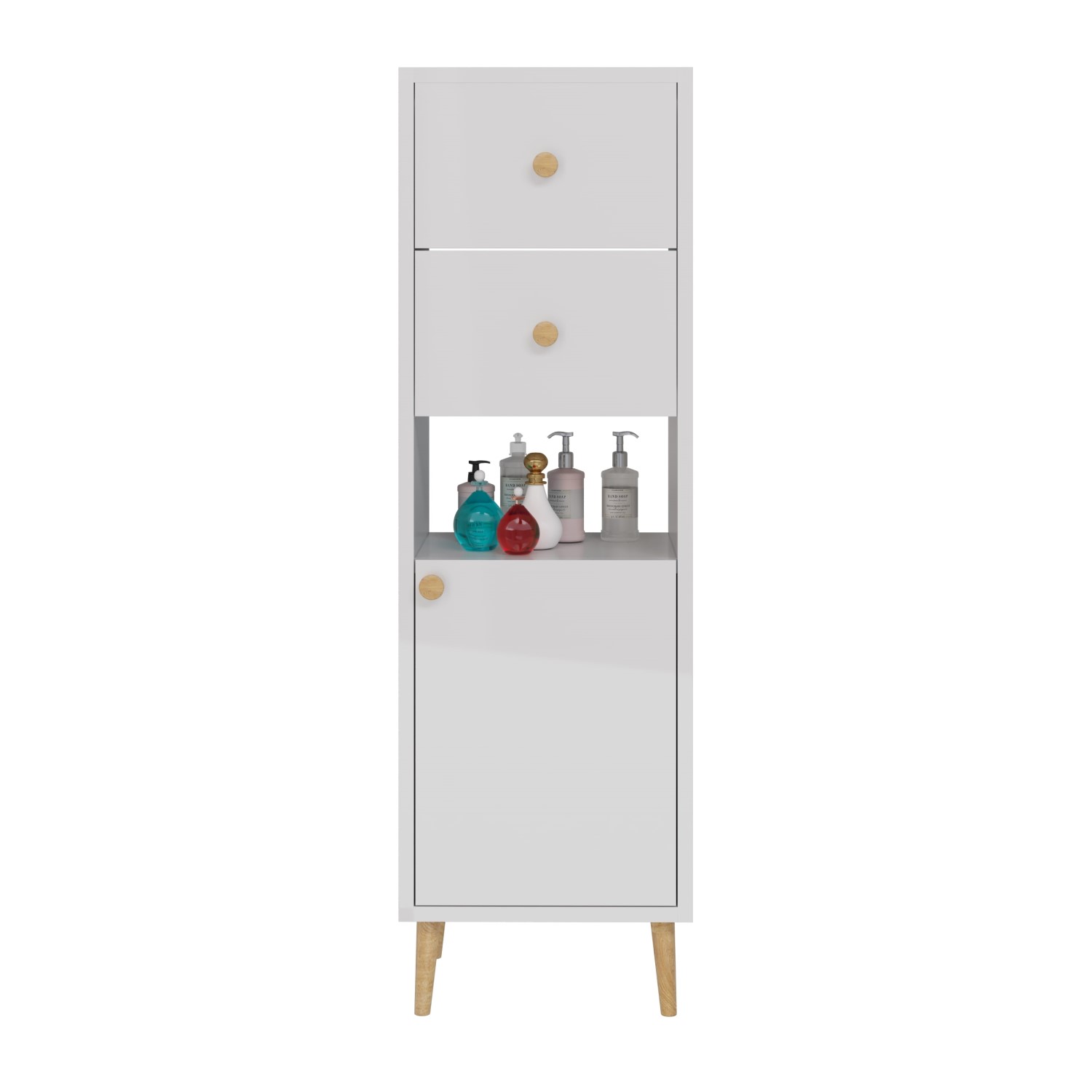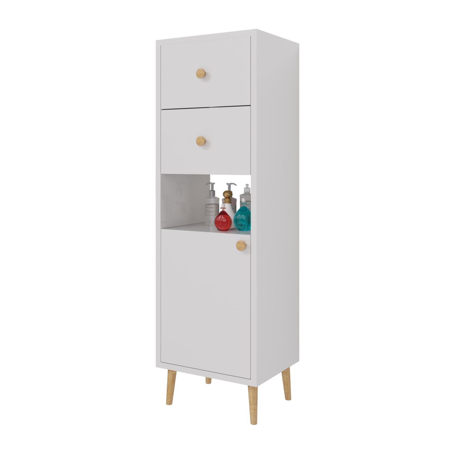 Шкаф напольный Dreja Luno 35 см, белого цвета. Материал корпуса выполнен из ЛДСП, материал фасада - из ЛДСП. Компоновка: 1 дверца, 2 ящика, 1 открытая полка