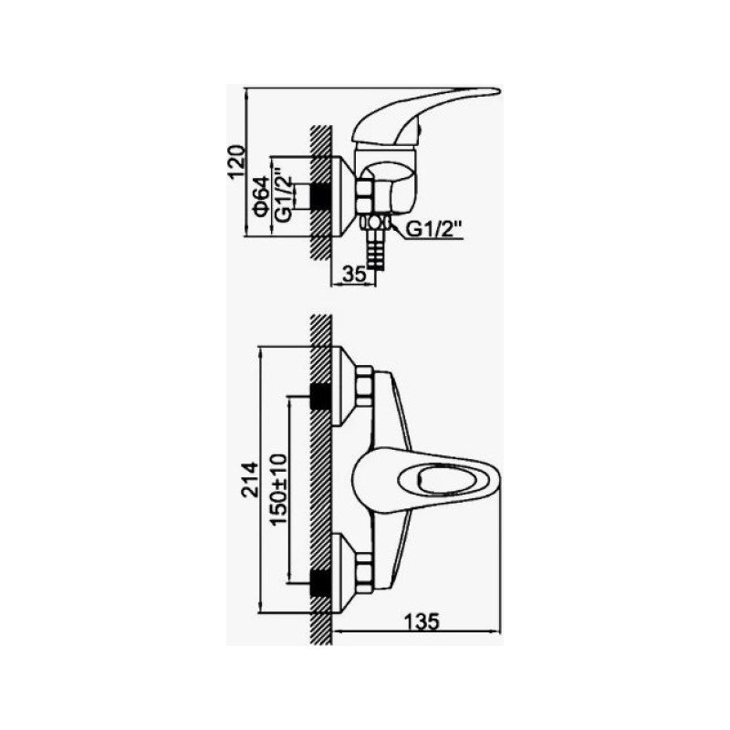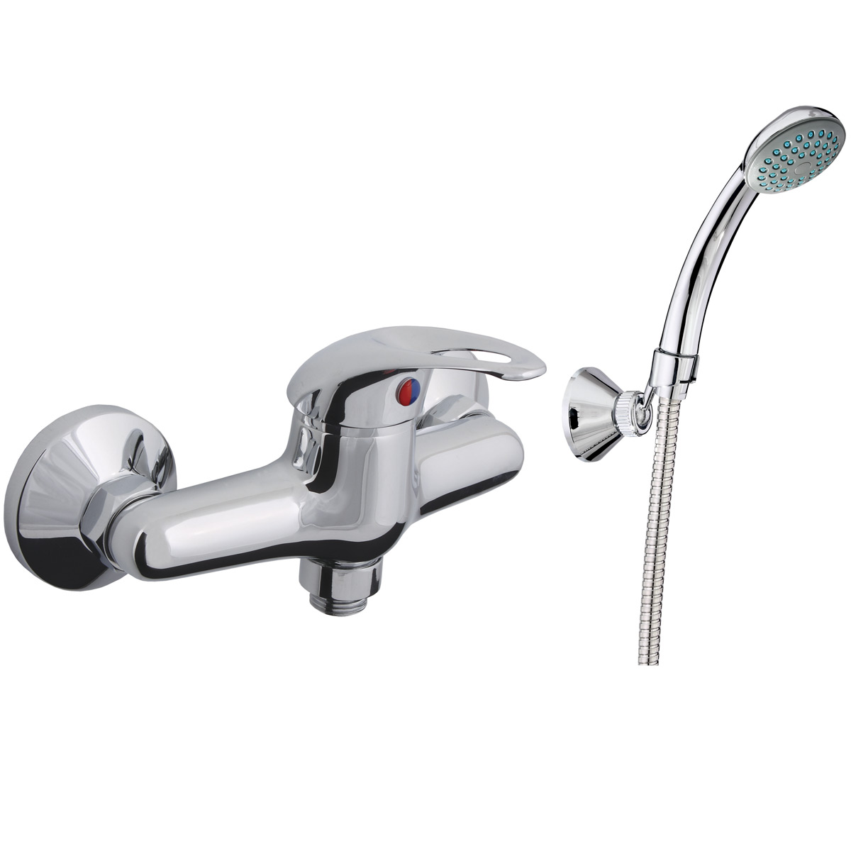 Смеситель, душевой шланг, душевая лейка, держатель лейки, эксцентрики, декоративные чашки.