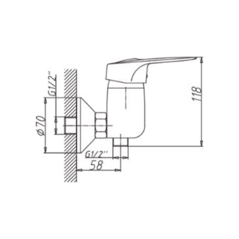 Смеситель, душевой шланг, душевая лейка, держатель лейки, эксцентрики, декоративные чашки.