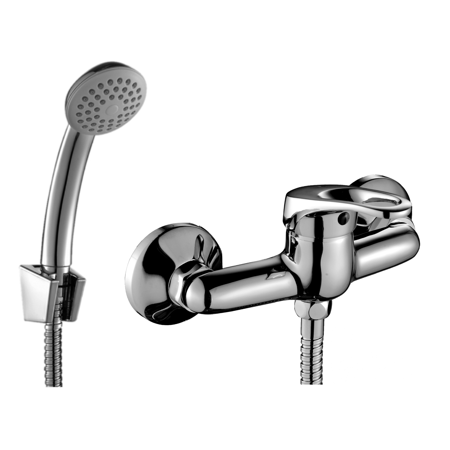Смеситель, душевой шланг, душевая лейка, держатель лейки, эксцентрики, декоративные чашки.