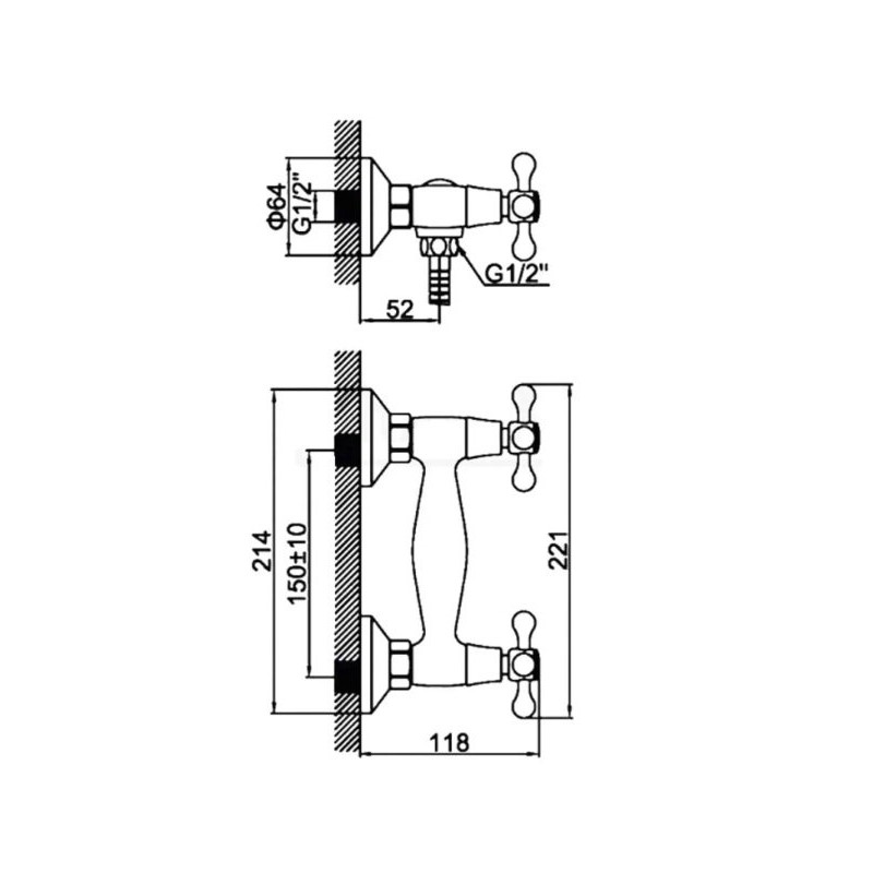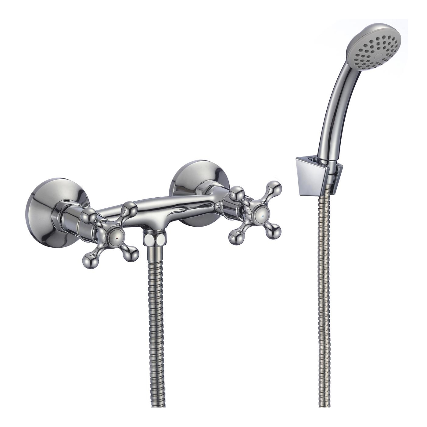Смеситель, душевой шланг, душевая лейка, держатель лейки, эксцентрики, декоративные чашки.