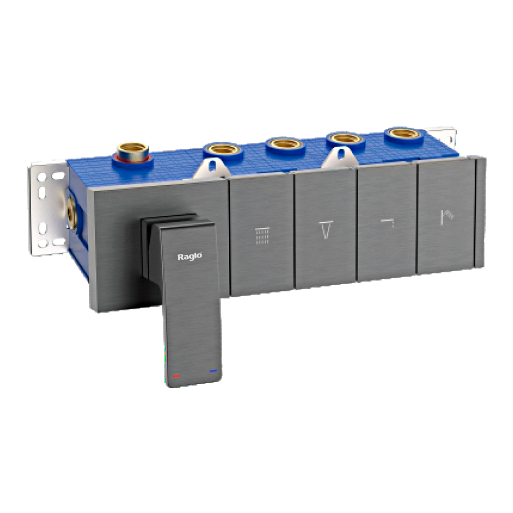 Корпус смесителя + внутренняя часть Raglo R02.274.09, 4-режима, графит. Встраиваемый монтаж. Керамический картридж 40 мм. Управление рычажное + кнопочное.