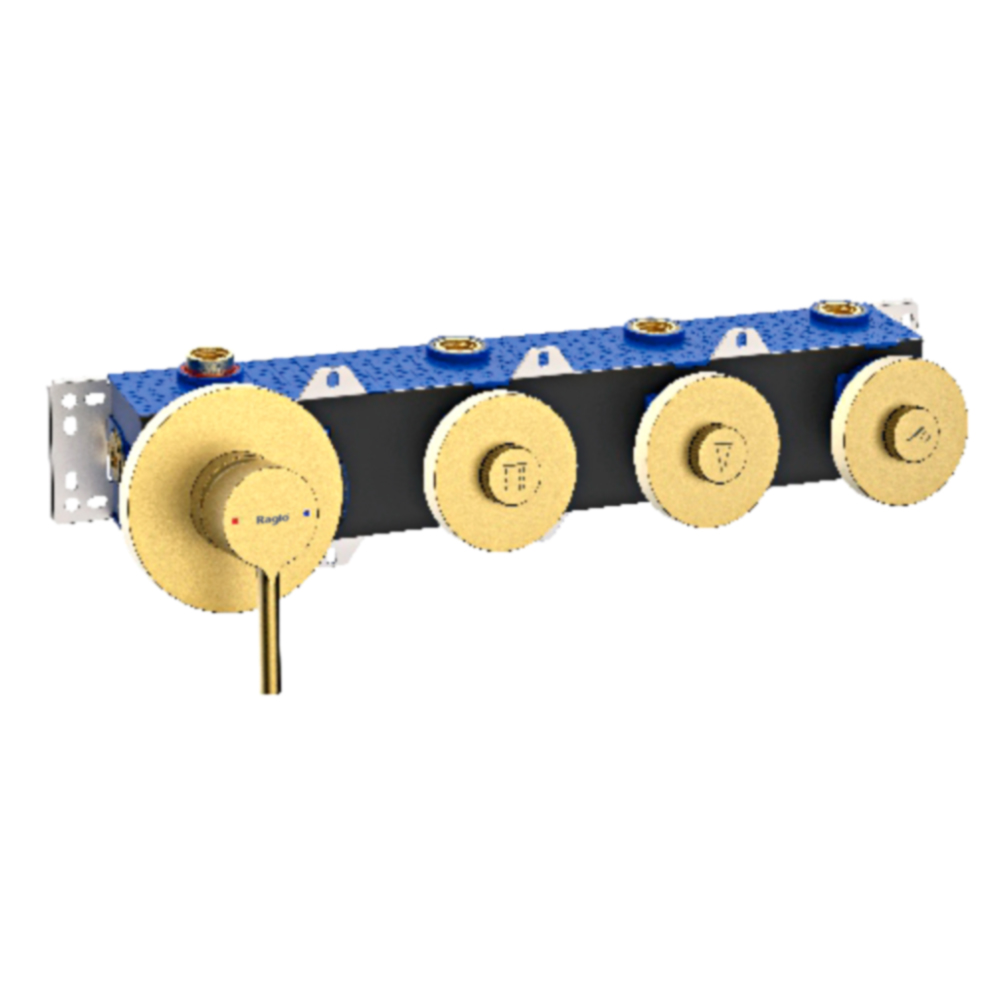 Корпус смесителя + внутренняя часть Raglo R20.273.03, 3-режима, золотой сатин (брашированное золото). Встраиваемый монтаж. Керамический картридж 40 мм. Управление рычажное + кнопочное.