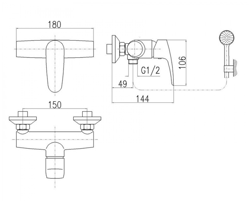 Душевая лейка и гибкий шланг длиной 150 см.