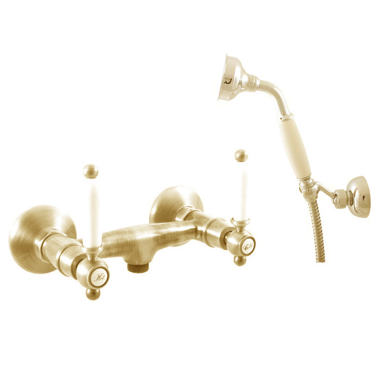 Смеситель для душа Rav Slezak Morava retro MK580.5/2 монолитный, с душевым гарнитуром. Латунные рукоятки. Качественные керамические кран буксы, гарантируют долговечность и мягкий поток воды, производство Германия. Металлический шланг с двойной оплеткой, длиной 1500 мм. Латунная душевая лейка с керамической ручкой. Настенный держатель для лейки с возможностью менять угол наклона. В комплекте смеситель, шланг, душевая лейка, держатель для лейки и комплект крепления.