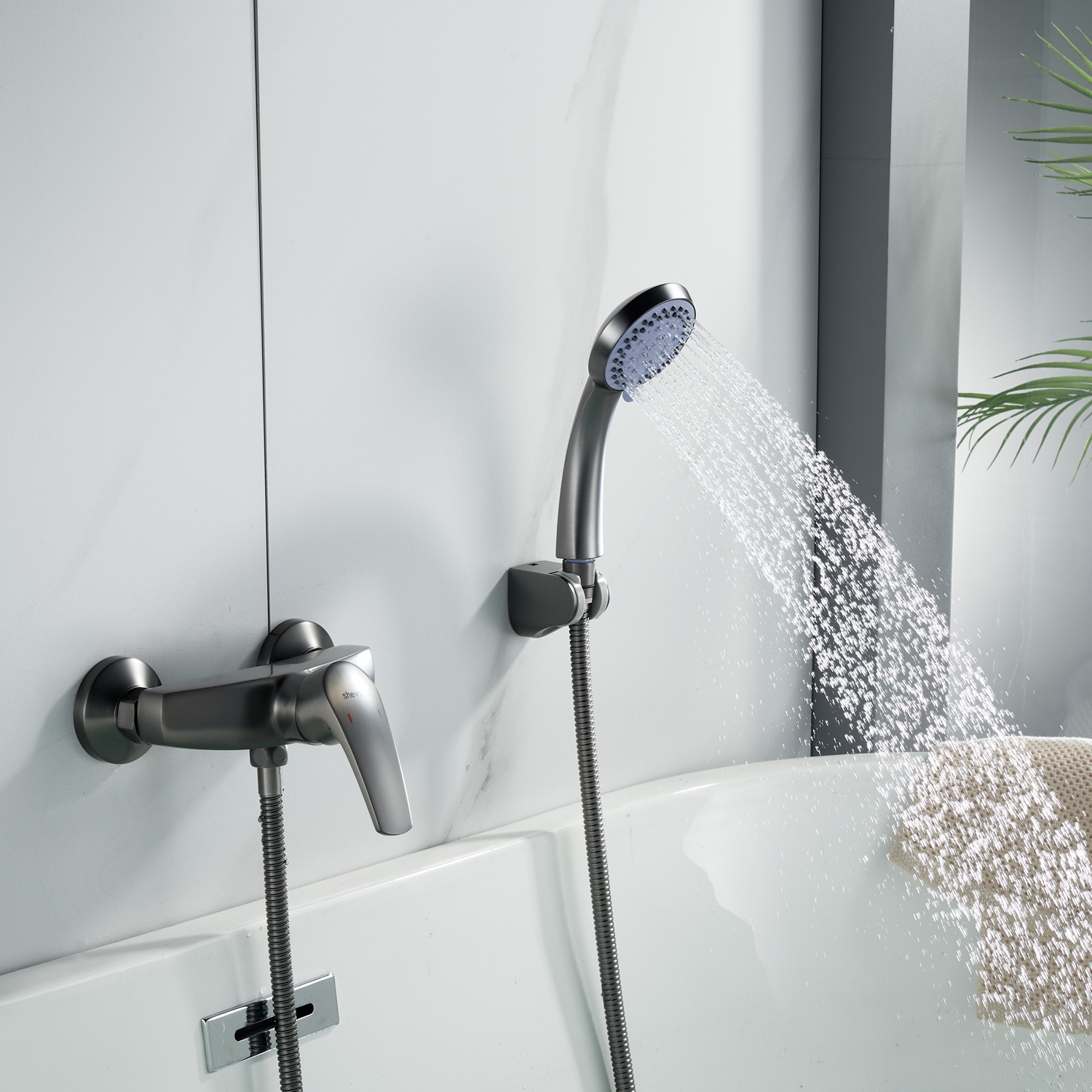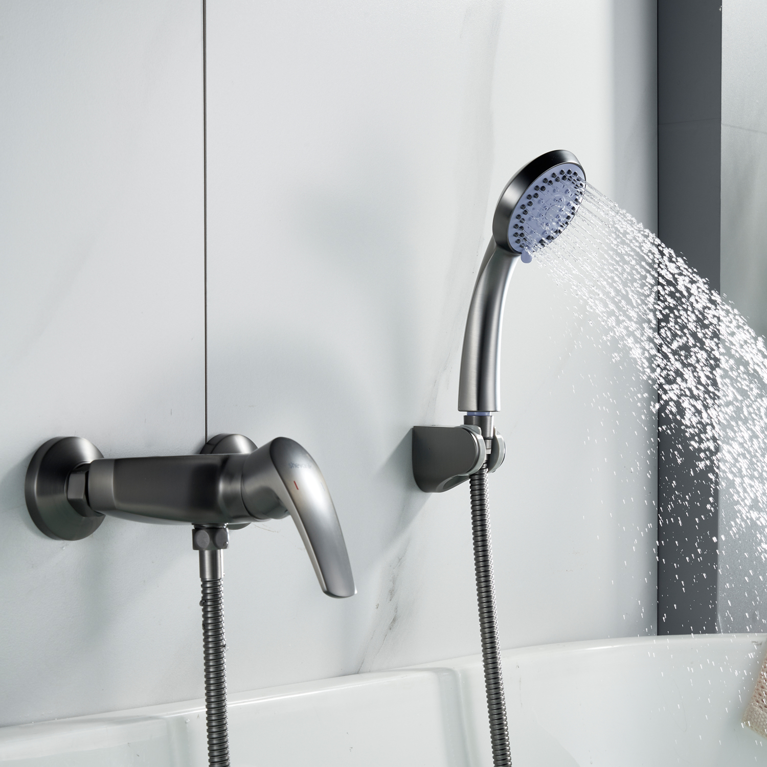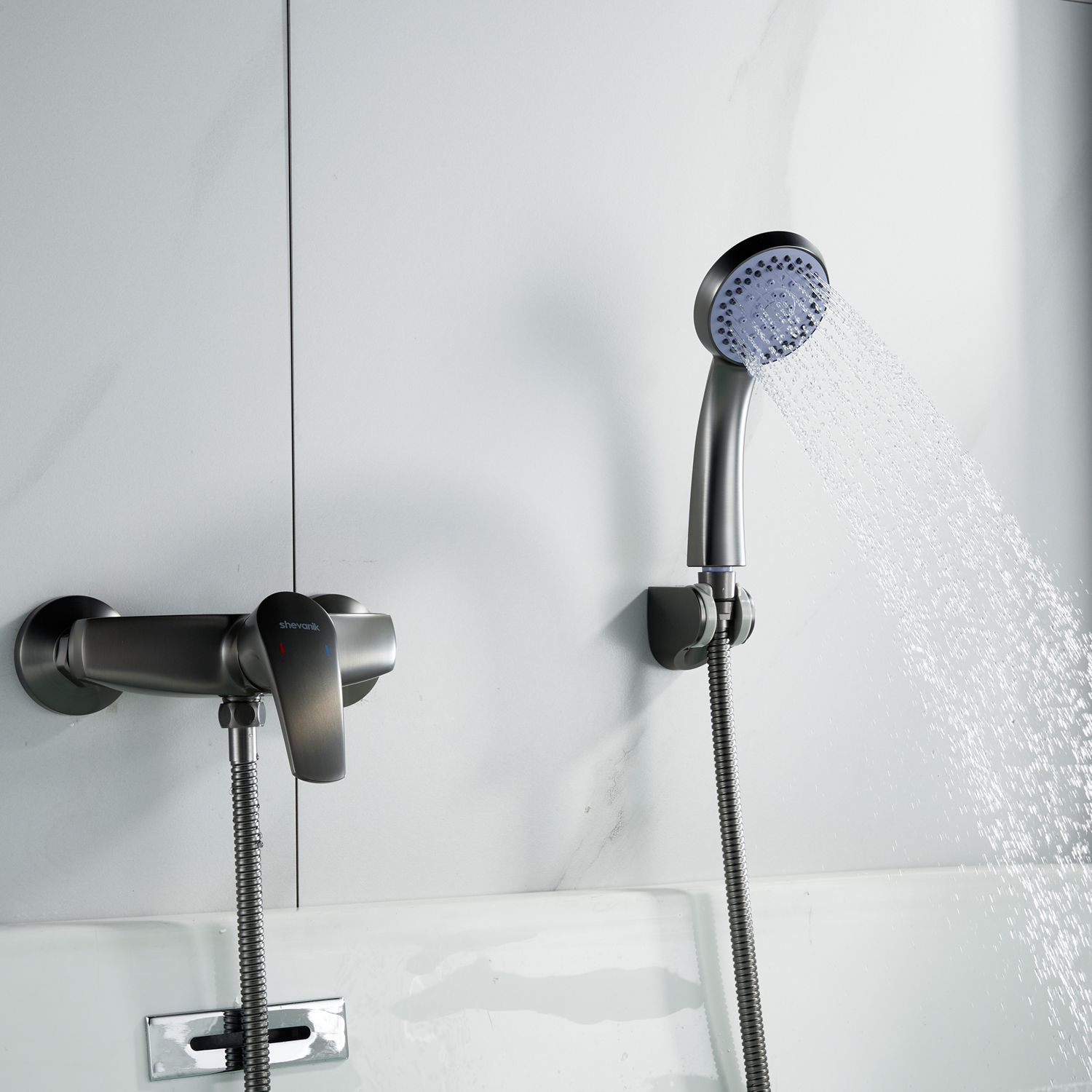 смеситель, эксцентрики, декоративные чашки, душевая лейка, душевой шланг, настенный держатель лейки