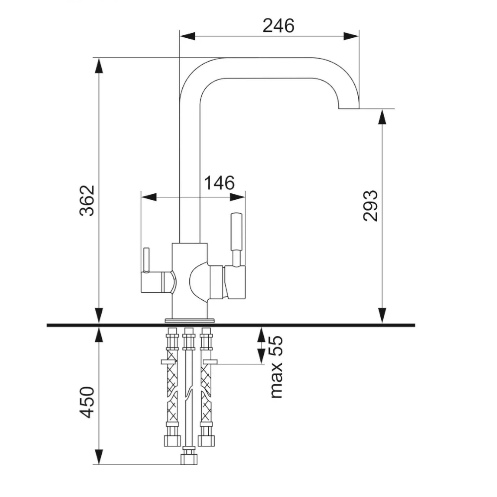 ULGRAN Quartz UQ-019 - современный кухонный смеситель с дополнительным краном для подключения фильтрованной воды, оснащенный кран-буксой с керамическими пластинами. Реализован тройной подвод воды через один излив: холодная, горячая и фильтрованная. Переход с одного подвода на другой производится поворотом рычага. Набор для соединения с фильтром входит в комплект . Система фильтрации приобретается дополнительно и монтируется под мойку, специальный индикатор сообщает о необходимости замены картриджа. Материал корпуса выполнен из высококачественной латуни, а окрашивание под "искусственный камень" в цвет мойки ULGRAN Quartz выполняется на собственном производстве, что позволяет идеально попасть в фирменный цветULGRAN Quartz. В качестве керамического картриджа используется известный бренд Wanhai диаметром 35 мм с высокой пропускной способностью в 500 тысяч циклов "открывания-закрывания". На подвижные части картриджа Wanhai нанесена специальная невымываемая силиконовая смазка, а керамические пластины изготовлены из 96% оксида алюминия, что, в сочетании с высоким качеством шлифовки обеспечивает долговечность, надежность, плавность хода рукоятки. Смеситель оборудован съемным пластиковым аэратором для экономии воды и поворотным изливом на 360 градусов. В комплектацию входя: керамический картридж Wanhai, гибкая подводка, комплект крепежных элементов, кран-букса с керамическими пластинами для дополнительного излива для фильтрованной воды, набор для подсоединения фильтра питьевой воды (гибкая подводка + переходник-цанга), технический паспорт и гарантийный талон. Заводская гарантия составляет 3 года на материал корпуса, 1 год на комплектующие к смесителю и 1 год на материал покрытия.