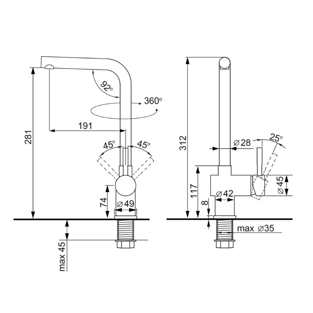 Высота излива, см28.1