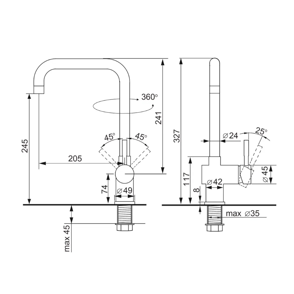 Высота излива, см24.5