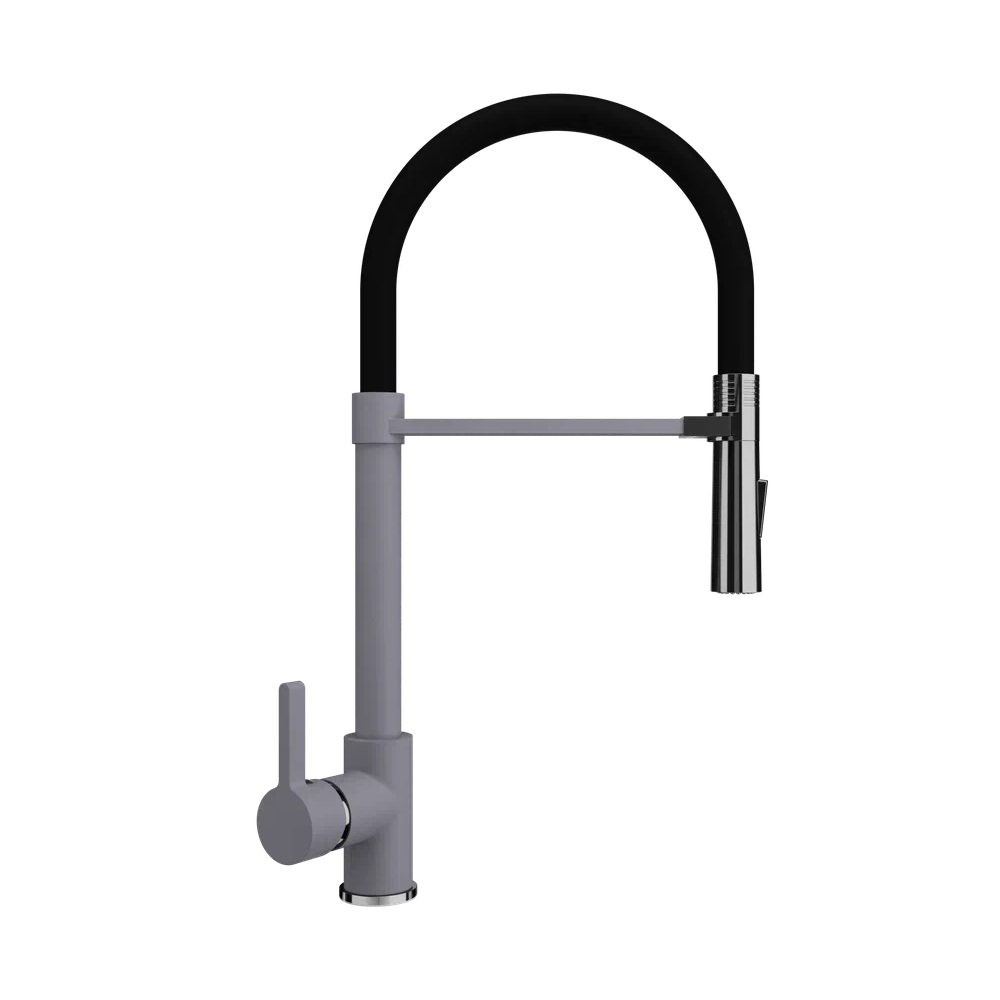 Смеситель ULGRAN U-024 – это стильный и современный кухонный смеситель с высоким гибким изливом черного цвета. Материал корпуса выполнен из высококачественной латуни, а окрашивание под «искусственный камень» выполняется на собственном производстве, что позволяет идеально попасть в цвет моек ULGRAN.