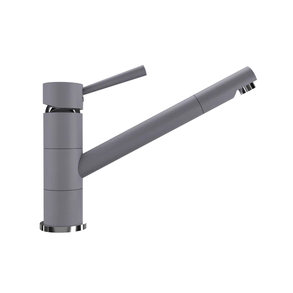 ULGRAN UQ-025 – удобный кухонный смеситель с низким поворотным изливом. Материал корпуса выполнен из высококачественной латуни, а окрашивание под «искусственный камень» в цвет мойки ULGRAN выполняется на собственном производстве, что позволяет идеально попасть в фирменный цвет. В качестве керамического картриджа используется известный бренд Wanhai диаметром 40 мм с высокой пропускной способностью в 500 тысяч циклов «открывания-закрывания».