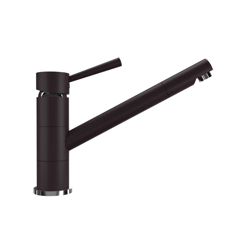 ULGRAN UQ-025 – удобный кухонный смеситель с низким поворотным изливом. Материал корпуса выполнен из высококачественной латуни, а окрашивание под «искусственный камень» в цвет мойки ULGRAN выполняется на собственном производстве, что позволяет идеально попасть в фирменный цвет. В качестве керамического картриджа используется известный бренд Wanhai диаметром 40 мм с высокой пропускной способностью в 500 тысяч циклов «открывания-закрывания».
