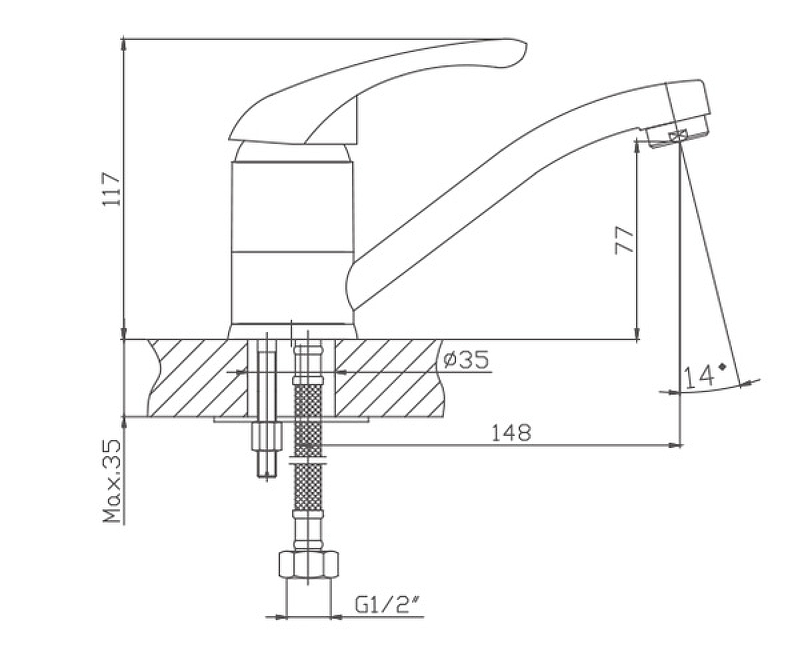 Керамический картридж 40 мм. Изготовлен из металлического сплава. Изменение угла аэратора на 14 градусов. Максимальная глубина монтажа 35 мм. Монтажное отверстие 35 мм. Поворотный излив. Цвет хром.