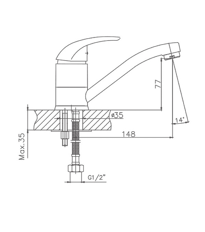 Керамический картридж 40 мм. Изготовлен из металлического сплава. Изменение угла аэратора на 14 градусов. Максимальная глубина монтажа 35 мм. Монтажное отверстие 35 мм. Поворотный излив. Цвет хром.