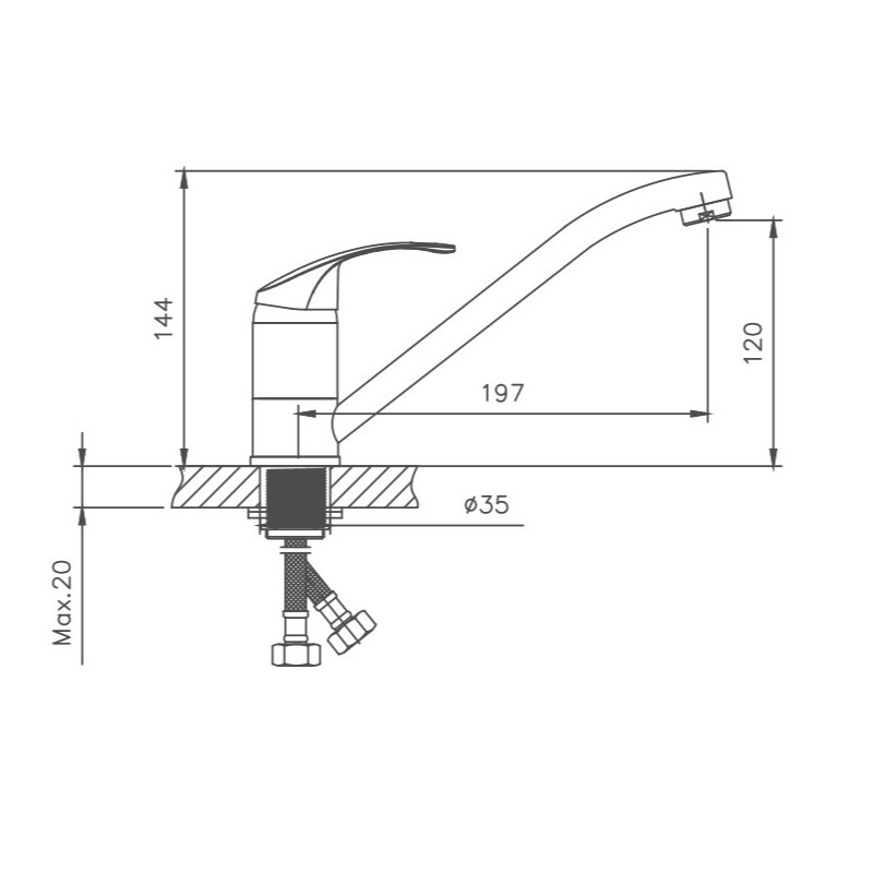 Керамический картридж 35 мм. Изготовлен из металлического сплава. Максимальная глубина монтажа 20 мм. Монтажное отверстие 35 мм. Поворотный излив. Цвет хром.