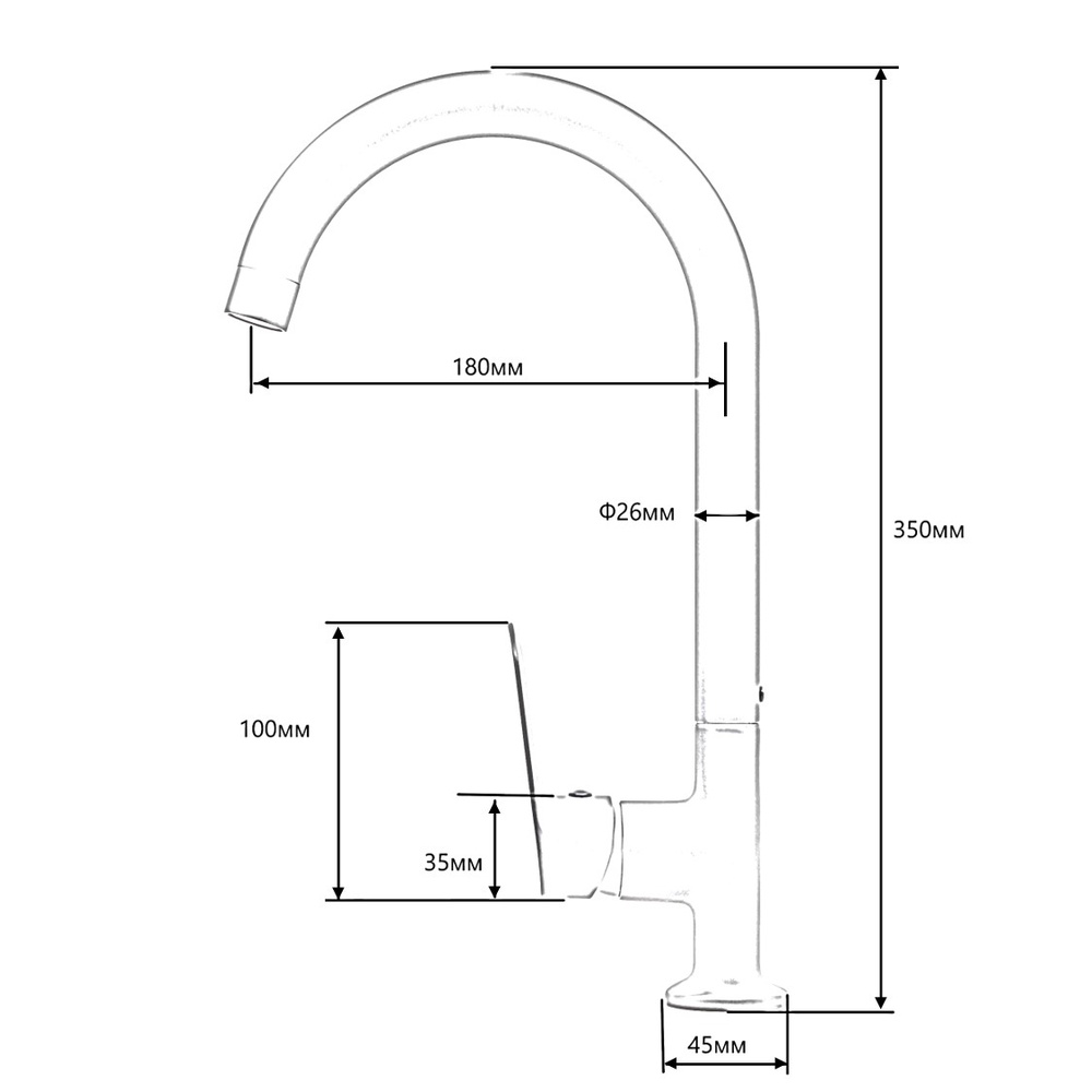 Длина излива, см: 18